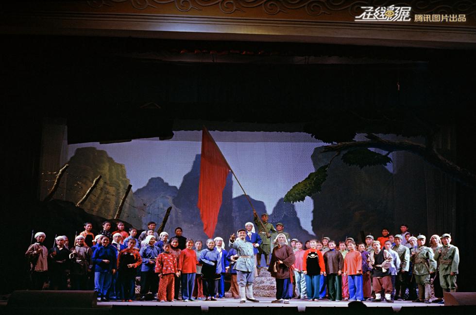 1972年5月,山西临县晋剧团在吕梁下乡为农民演出样板戏“沙家浜”。