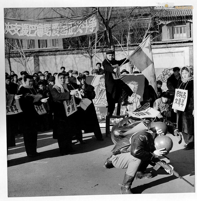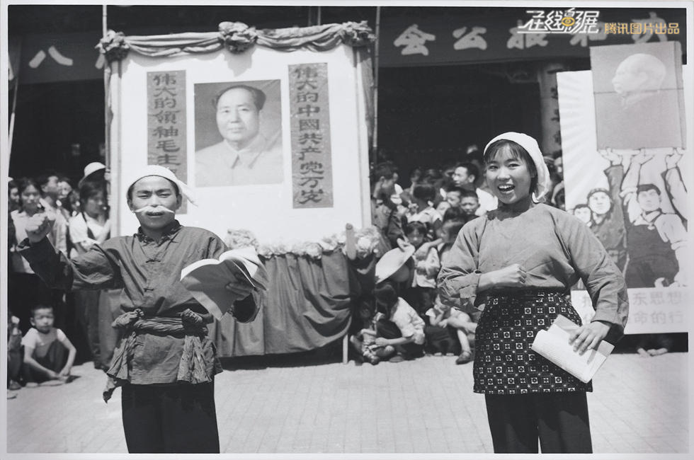 1966年,文化大革命拉开序幕,山西省文艺工作者在街头宣传联合公报。