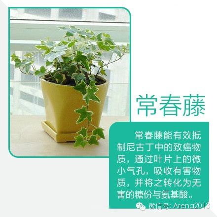 ④常春藤:有效抵制尼古丁中的致癌物质。