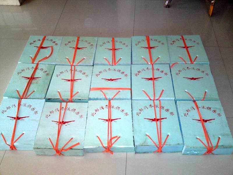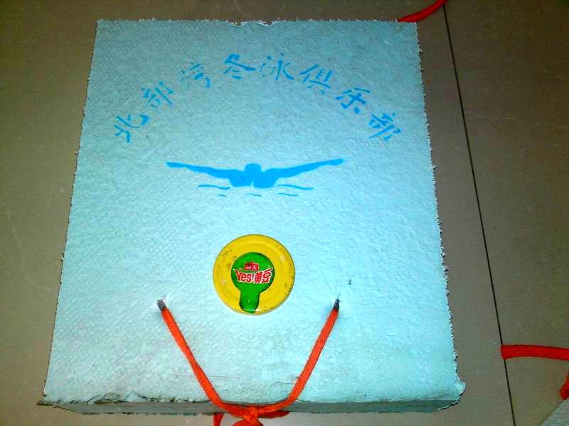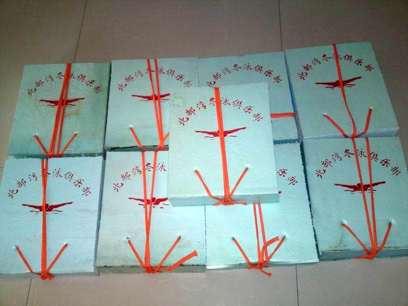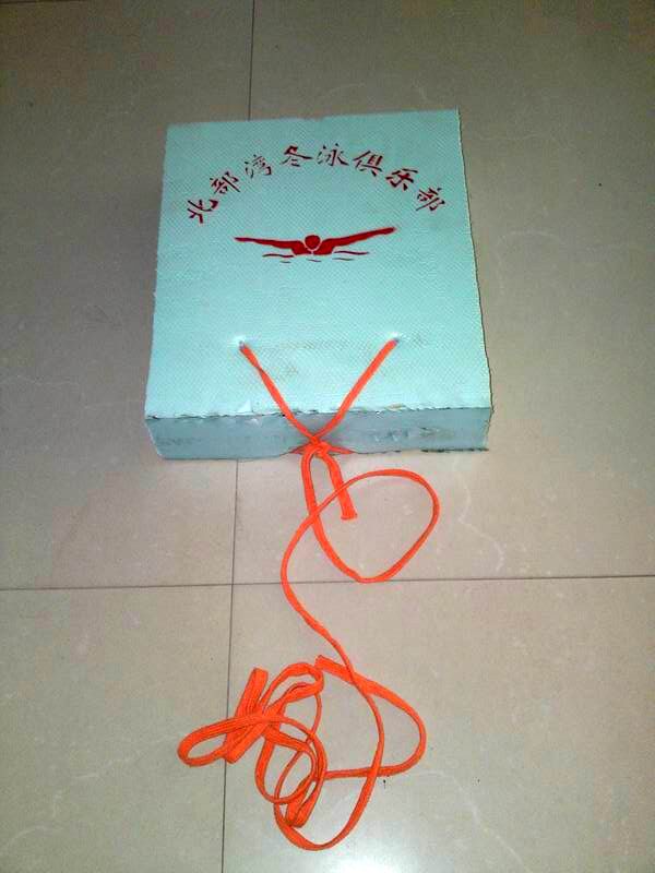 首批20块北部湾冬泳俱乐部护泳浮板缚好绳了。