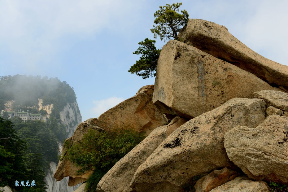 东峰顶的杨公塔为杨虎城修建,站立在华岳仙掌之上