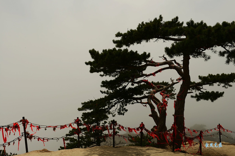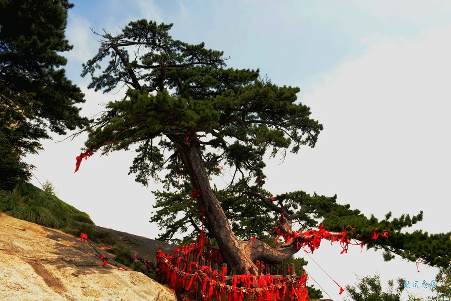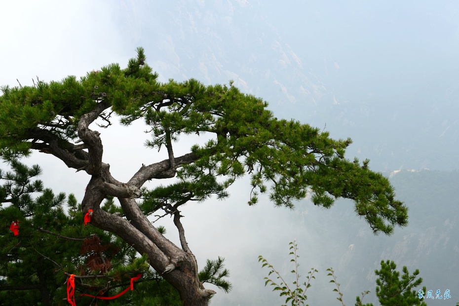 观看华关中八景之首岳仙掌处的一棵延伸山崖间的美丽松枝