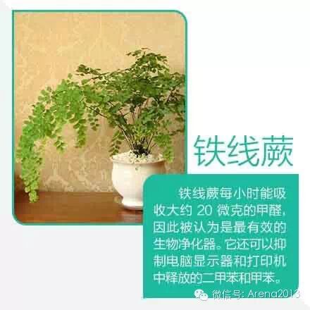 ⑨铁线蕨:吸收甲醛。