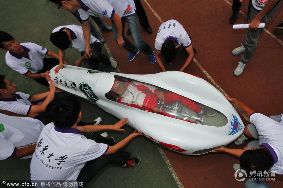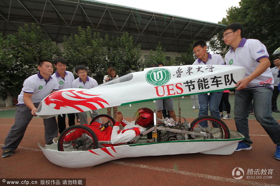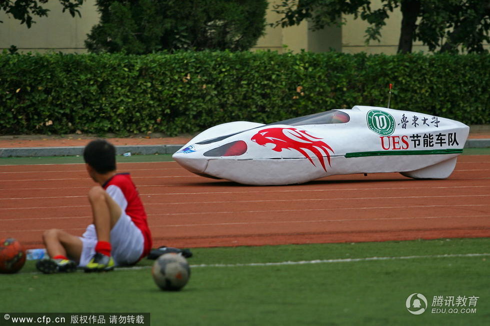 2014年09月16日,山东省烟台市,鲁东大学车辆工程专业学生制造的节能汽车,在测试运行中取得了百公里仅耗油0.4升的成绩。该车由学生手工打造,使用一台本田125cc发动机,采用一级同步带传动系统。车体采用仿水滴流线型设计,风阻系数低于0.2。车身材料主要使用树脂和玻璃纤维,使得车辆自重仅为50千克。