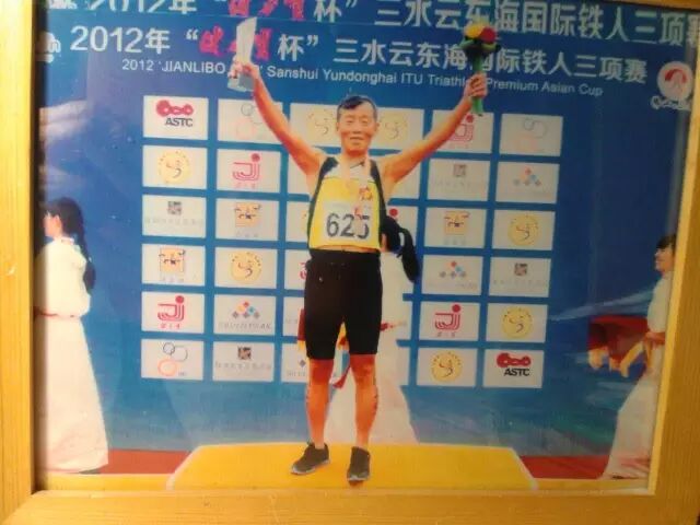 2014年9月21日,我又随薛立志老哥参赛威海铁三。上午9点发令枪响开始,烟台74岁的冬泳人薛立志老哥,进入了威海长距离“铁人三项”世界锦标赛的赛场。游泳4000米,骑行120公里,跑步20公里。一气合成。到下午6:10分,合计144公里的赛程,经过9小时10分钟的赛场拼搏,顺利完成全程比赛!还基本不太累,获威海长距离“铁人三项”世界锦标赛第二名。第一名是美国选手。在中国就是薛立志大哥了!薛立志大哥成为全国老年人的铁三领军人物。
