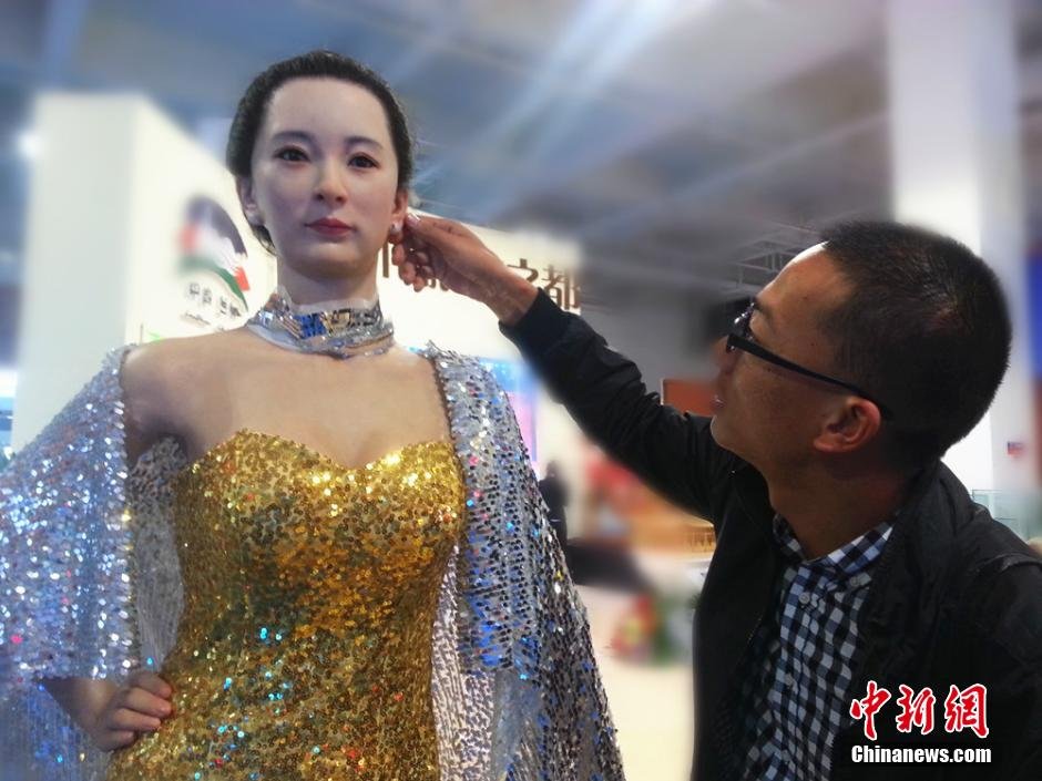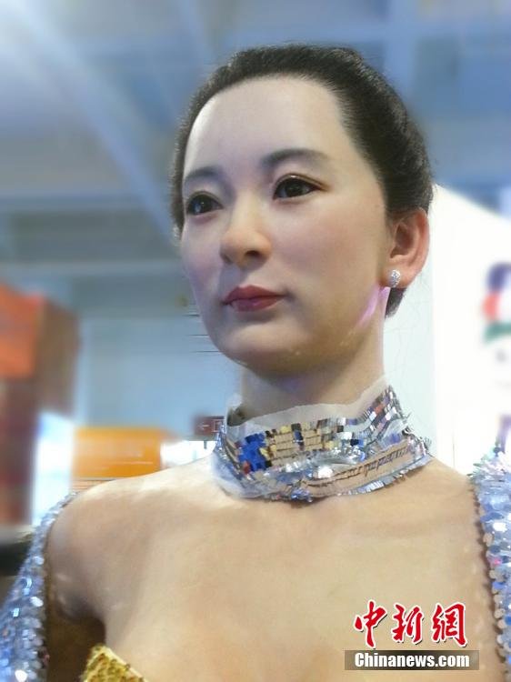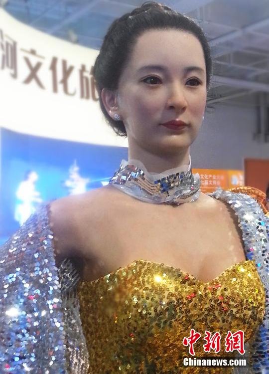 10月11日,以一身性感晚礼服惊艳亮相甘肃省第七届文博会展馆的“美女”机器人,长相靓丽,能够完成点头、眨眼、摆手等动作,还可以进行简单的交谈,因其外形极其逼真,引得当地民众一试真假。
