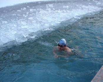 冬泳是指冬季在室外水域(包括江、河、湖、海等自然水域与水库等人工水域)自然水温下的游泳。即以立冬、立春辅以气温10℃以下为冬季的标准定义冬泳;以水温为标志,全国冬泳可划分为四个层次区:气温以17℃作为冬泳的起点;水温以8℃作为冬泳的冷度标志。17℃以下的水温给人以冷感,低于8℃以下则有冷、麻、强冷刺激的感觉。冬泳是集冷水浴、空气浴与日光浴于一体的“三浴”。