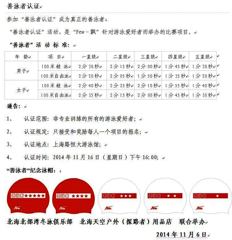 “善泳者认证”活动,是中国高端游泳品牌“Few-飘”针对游泳爱好者而举办的比赛项目。