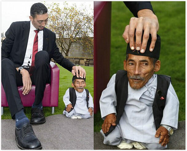 当地时间11月13日,在伦敦国会大厦前,世界最高的男性和最矮的男性邂逅了。一个是来自土耳其的苏丹-克森(Sultan Kosen),身高2米51,一个是来自尼泊尔的坎德拉-巴哈杜尔(Chandra Bahadur Dangi),身高仅54.6厘米。二人均早被列入吉尼斯世界纪录大全,这次他们和其它几百位吉尼斯世界纪录保持者一起庆祝吉尼斯纪录走过60周年。