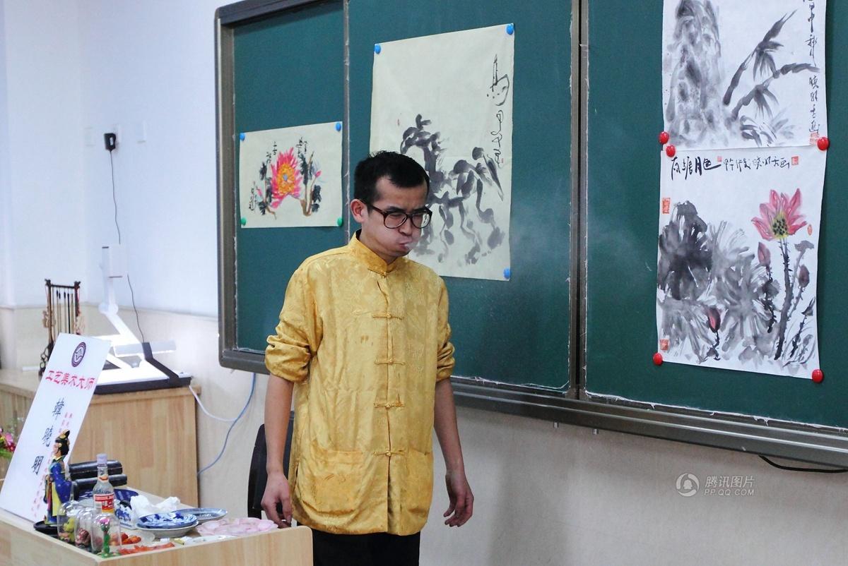 工艺美术大师韩晓明拥有一项绝技,就是用舌头作画,近来在杭州表演多场,受到国内外媒体的关注。