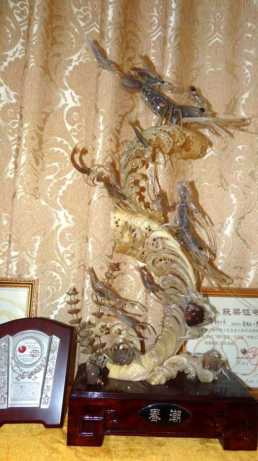 老白的另一件角雕工艺作品在2014年还获得一个全国金奖。