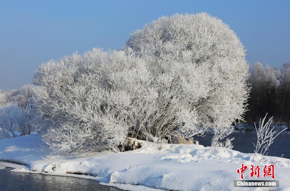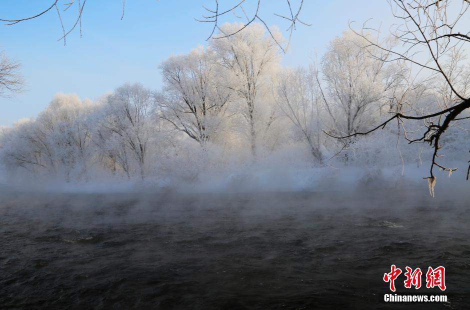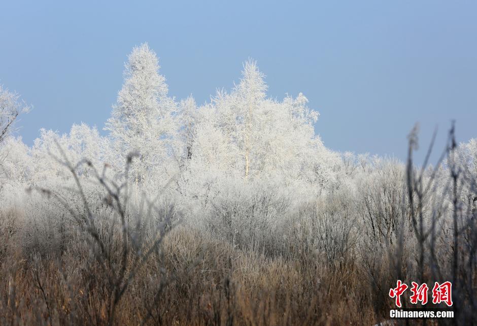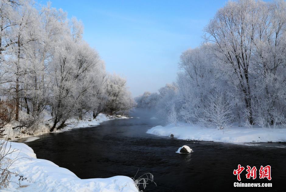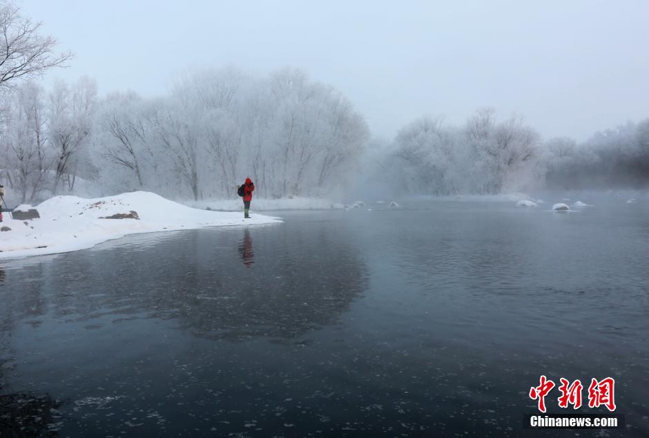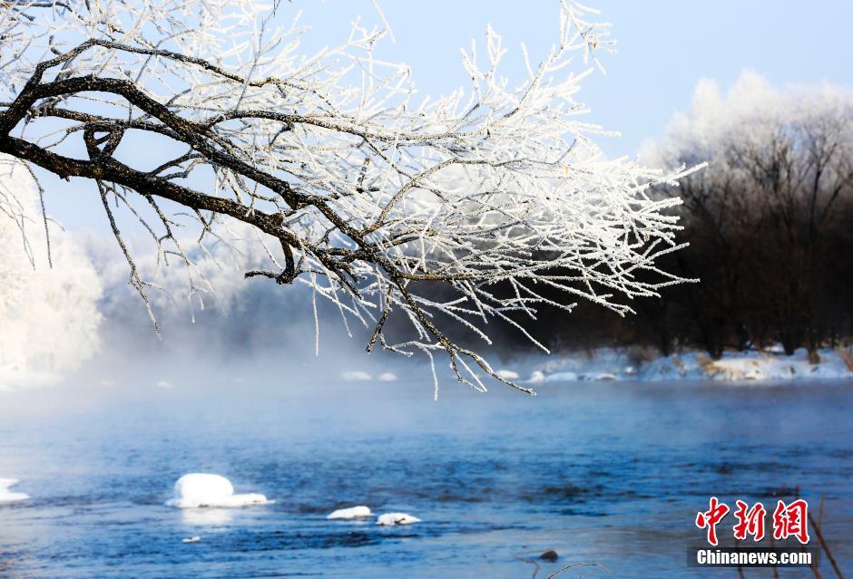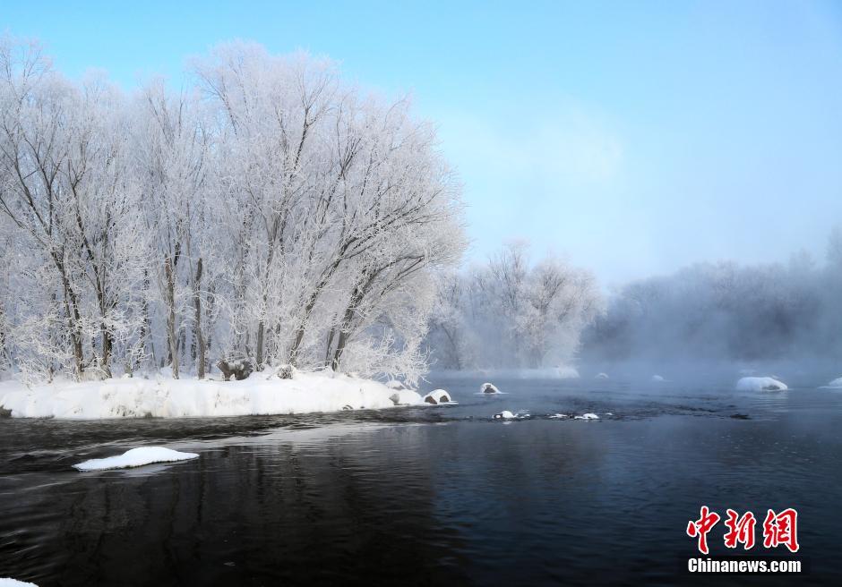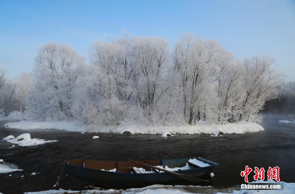 1月21日,黑河市逊克县克林镇平台村雾凇风景如画,引来众多游客和摄影爱好者。