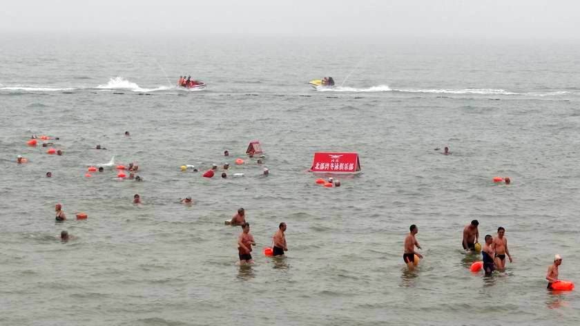 今天上午,来自黑龙江、吉林、辽宁、甘肃、北京、河南、河北、贵州、湖北、新疆等地冬泳协会部分在北海过冬的队员也参加了活动。