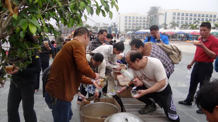 今天的糯米糖粥是林师傅和梁师傅早上5点多钟就生火煮的,几两和老李7点多就到林师傅家去帮助工作。北海北部湾冬泳俱乐部为有一批热心关心和支持俱乐部,又甘于默默奉献的队员而自豪。北海北部湾冬泳俱乐部的成长离不开队员们和社会各界的鼎力支持,离不开俱乐部全体队员的团结协作,只要我们团结得像胶胶杰杰、扭粘扭粘的糯米糖粥那样,我们就有战无不胜的强大力量,我们的队伍就发展得更好。