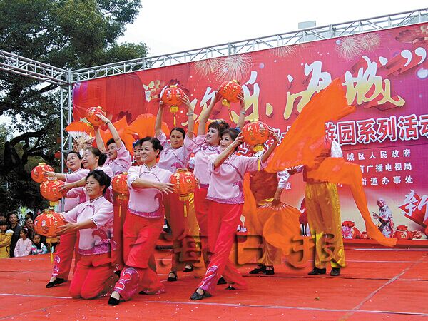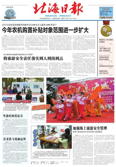 北海北部湾冬泳俱乐部文艺队的舞蹈《红红的日子》春节期间为市民演出上北海日报头版