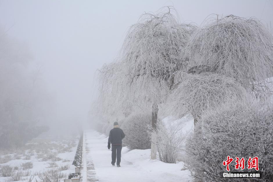 标题: 吉林松花江畔出现罕见三月春季雾凇景观