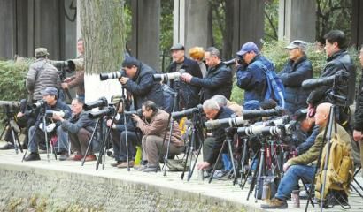 2月26日,四川大学华西医学院荷花池,摄友们长枪短炮“捕捉”翠鸟。
