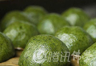 清明时节,江南一带有吃青团子的风俗习惯。青团子是用一种名叫“浆麦草”的野生植物捣烂后挤压出汁,接着取用这种汁同晾干后的水磨纯糯米粉拌匀揉和,然后开始制作团子。团子的馅心是用细腻的糖豆沙制成,在包馅时,另放入一小块糖菜油。团坯制好后,将它们入笼蒸熟,出笼时用毛刷将熟菜油均匀地刷在团子的表面,这便大功告成了。青团子油绿如玉,糯韧绵软,清香扑鼻,吃起来甜而不腻。青团子还是江南一带人用来祭祀祖先必备食品,正因为如此,青团子在江南一带的民间食俗中显得格外重要。