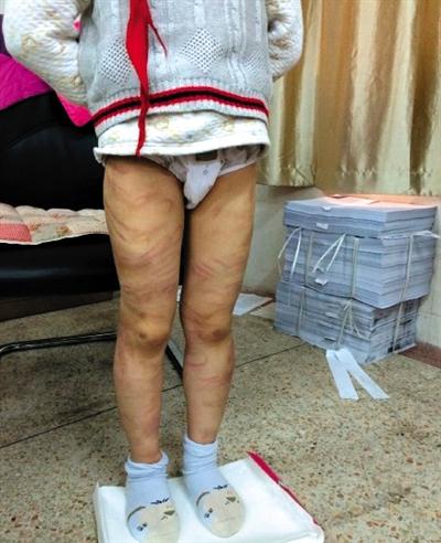 4月3日晚,微博网友“@朝廷半日闲”发图文微博展示男童被虐待的惨状。 微博截图