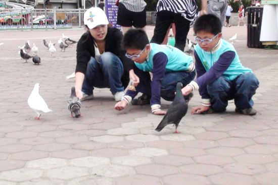 还记得梁朝伟说他没事的时候会去伦敦喂鸽子时你羡慕的眼神吗?在大连你也能有同样的体验。在广场边的小杂货亭里买一包鸽子食,坐在长凳上,好多鸽子就会咕咕叫着向你飞来,从你的手心里叼走食物。
