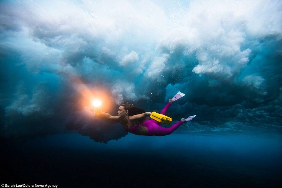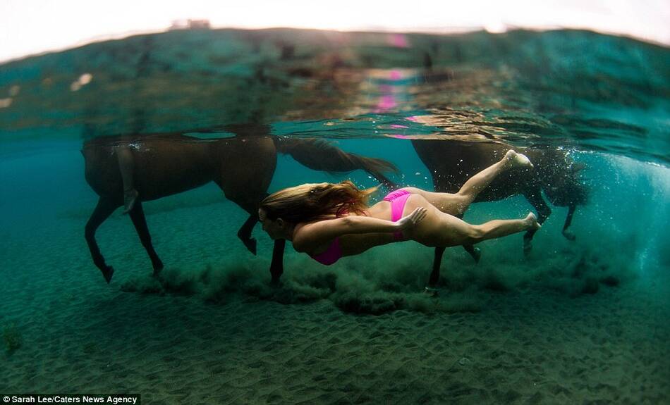 艾莉森享受在海中与海豚共同游泳的感觉。