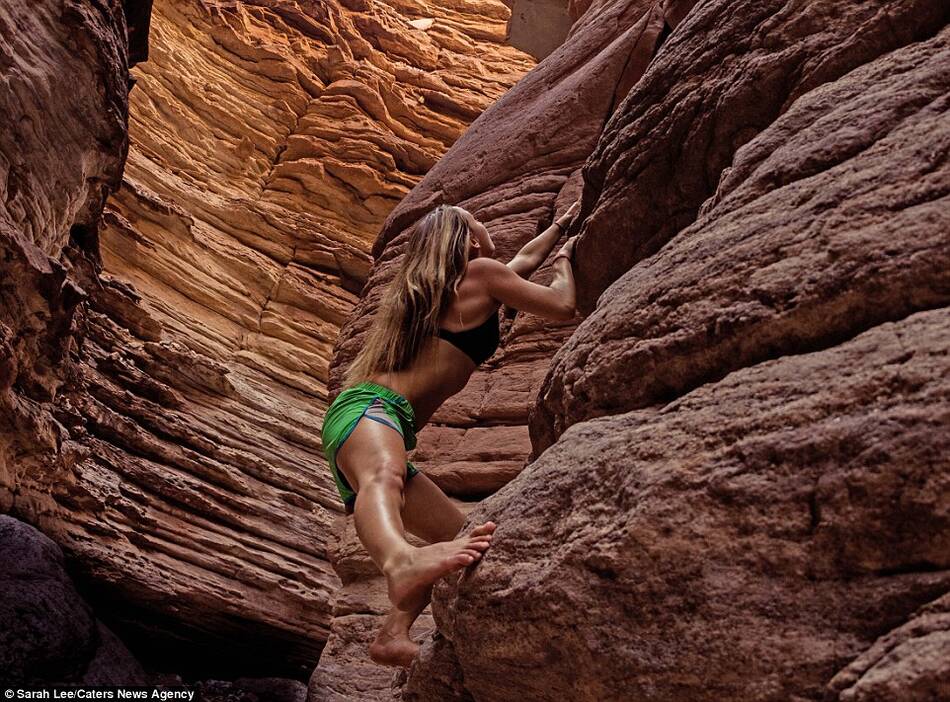 于是,在她长大以后,独自去全球各地进行冒险。她到过战火纷飞的叙利亚,美丽的马尔代夫,甚至亲吻过眼镜蛇。图为艾莉森攀援山谷去看眼镜蛇,一般人绝对不会这么干!