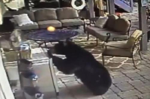 黑熊驾轻就熟地打开了冰箱门,从中拿出来几罐冰镇饮料。它先将其中一个易拉罐咬破,大口畅饮,再将另一罐咬破,将饮料喂给了自己的幼崽。三只熊在大快朵颐之后,扬长而去。