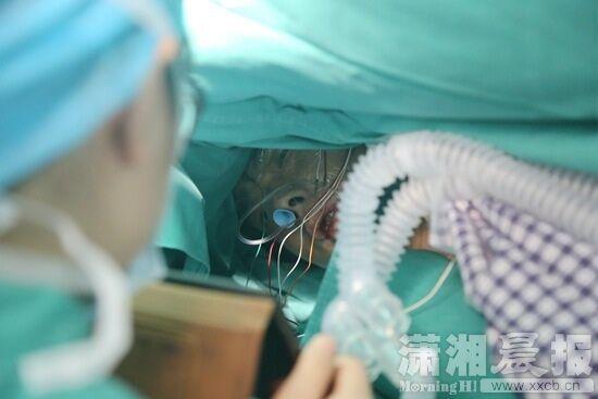 潇湘晨报长沙6月22日讯 记者刘少龙 通讯员王洁 “白日依山尽,黄河入海流……”相信这首唐诗大家都能脱口而出。但是,当躺在手术台上一边接受开颅手术时,还能一边清醒淡定地背完吗?6月22日,潇湘晨报记者从湘雅医院获悉,在湘雅医院神经外科手术室内,就出现了这样神奇的场景。湖南省颅底外科与神经肿瘤研究中心副主任、中南大学湘雅医院神经外科副主任刘庆教授正在主刀切除肿瘤,躺在手术台上的小颜(化名)正在淡定地背诗、算数、识图、念书。