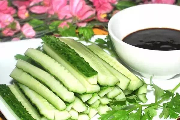 黄瓜具有明显的清热解毒、排毒养颜、生津止渴功效,黄瓜酸能促进人体的新陈代谢,排出毒素。黄瓜含有的丙醇二酸能抑制脂肪产生,而纤维素能促进人体肠道内腐化物质的排除和降低胆固醇,达到减肥强体的目的。