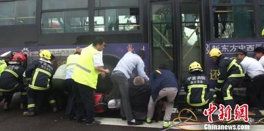 甬城再次上演众人抬车救人一幕。 何蒋勇 摄