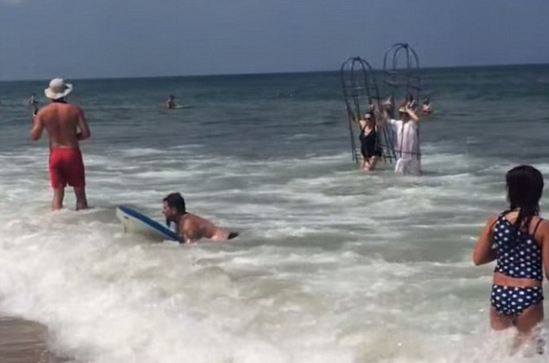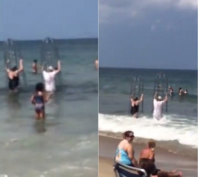 真能出花样,看样子防不了鲨鱼,又没法游泳,是在海边作秀!