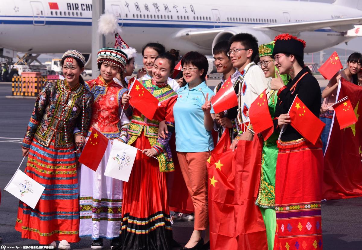 各界群众身着节日盛装、挥舞五星红旗和申办冬奥标志的彩旗在机场停机坪欢迎代表团载誉归来,并高喊“祖国万岁”口号。首都市民代表表示:“非常高兴,非常自豪,非常期待!”少年儿童代表团向申办团成员献上花束。