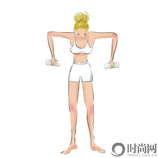 拜拜肉最大的问题除了脂肪堆积外,还有松弛。事实上,像跑步、单车这样的全身有氧运动没办法锻炼到这个部位,所以想要甩掉它,拥有优美紧实的手臂线条,就必须进行针对上臂和肩膀后侧的塑形运动。来源:时尚网