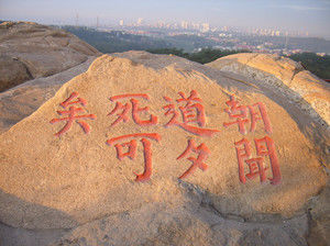 朋友想在这里留影,我觉得也可以。虽然字面上有“朝闻”“夕死”的字样,可真理是相对的,真理没有穷尽,追求真理的路也就不会有穷期,是故,但照无妨。