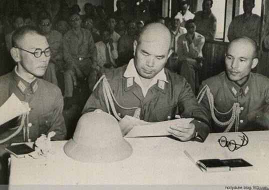 (在投降书上签字的今井武夫)