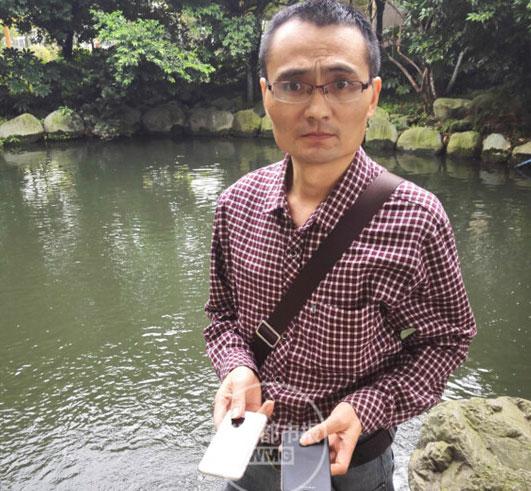 & S! N# l; k2 D# }2 s# `& U6 U易奉平展示被泡坏的手机