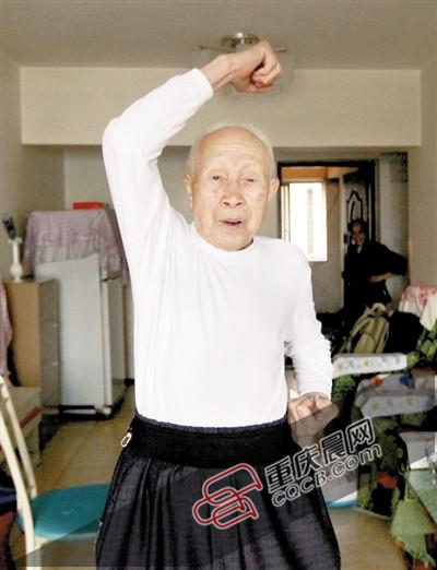 每天坚持3小时的硬气功锻炼,95岁的唐礼贤身体依旧很硬朗。 重庆晨报记者 雷键 摄