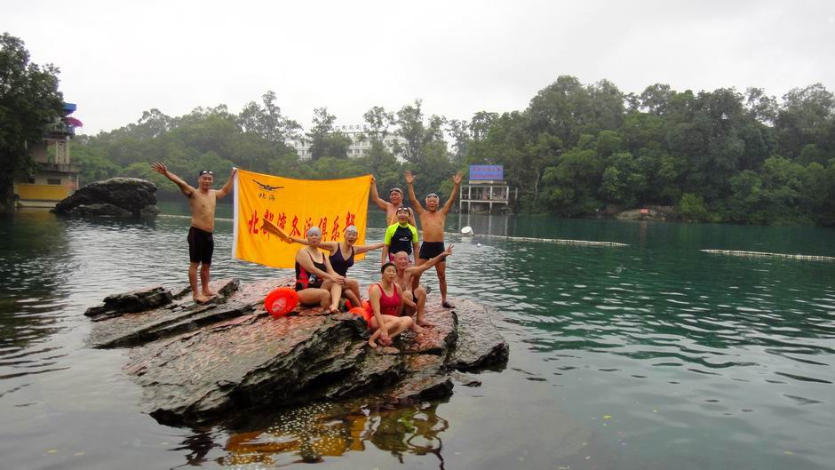 10月4日上午,北海北部湾冬泳俱乐部的队员在参加了由广西宜州市人民政府、广西游泳协会主办,广西宜州市文广新体局、宜州市游泳协会承办的“2015年广西宜州市第六届刘三姐文化旅游节暨畅游刘三姐门前那条河千人活动”后,驱车前往中国三大恒温湖之一的武鸣灵水风景区的灵水湖。