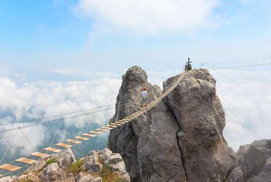 在克里米亚东南海岸,如果你想体验即惊险又美丽的景观,那这个在大峡谷上方的木桥会是你最佳的选择。