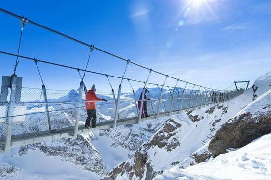 瑞士的铁力士峰吊桥在距海平面3000米的高空中,在这里人们可以看到雄伟的山脉全景,不过站在如此高的空中会让人紧张到浑身出汗。