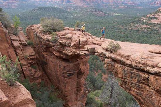 美国亚利桑那州的赛多纳城外的荒野保护区,有一座罕为人知的红岩山脉。这座天然形成的拱形红色魔鬼桥令人望而却步。