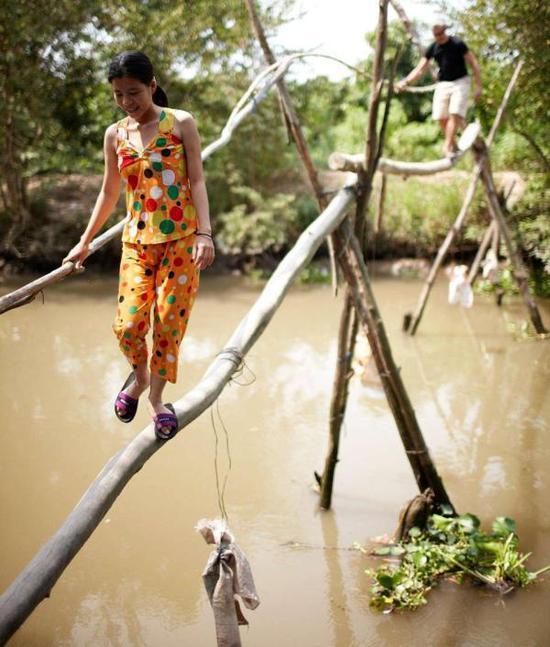 如果你想尝试一点好玩的过桥方法,不妨去越南试看看。这里的桥仅用一根圆木搭建而成,要成功走过去可是需要很好的平衡力哦!