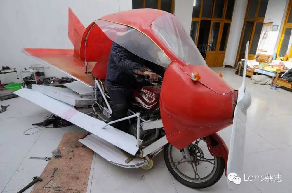 2012年11月28日,山东济南的张雪林坐在他自制的摩托飞艇上准备进行一次实验。他从小学辍学当了农民后就一直没闲着,一有时间就琢磨这些东西。于是他花了大概2000元,用木头和塑料板将自己的摩托进行改造,而此前的实验均以失败告终。