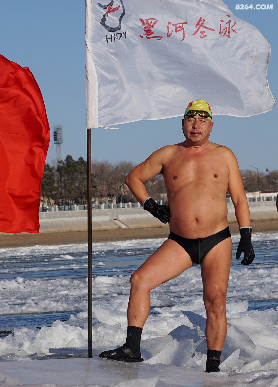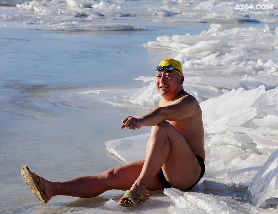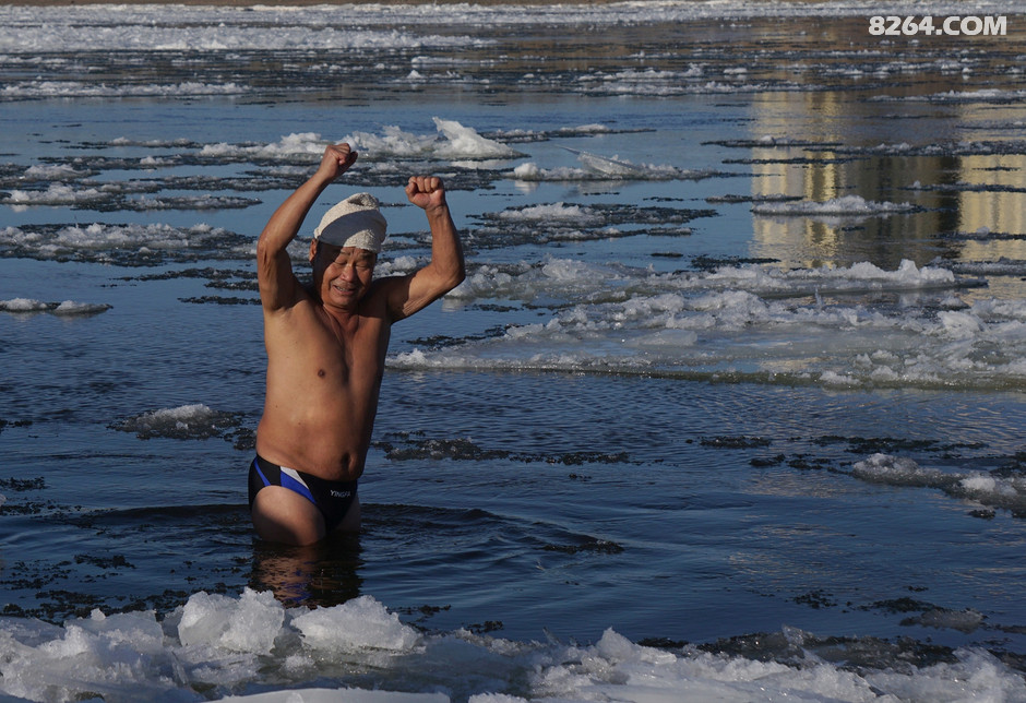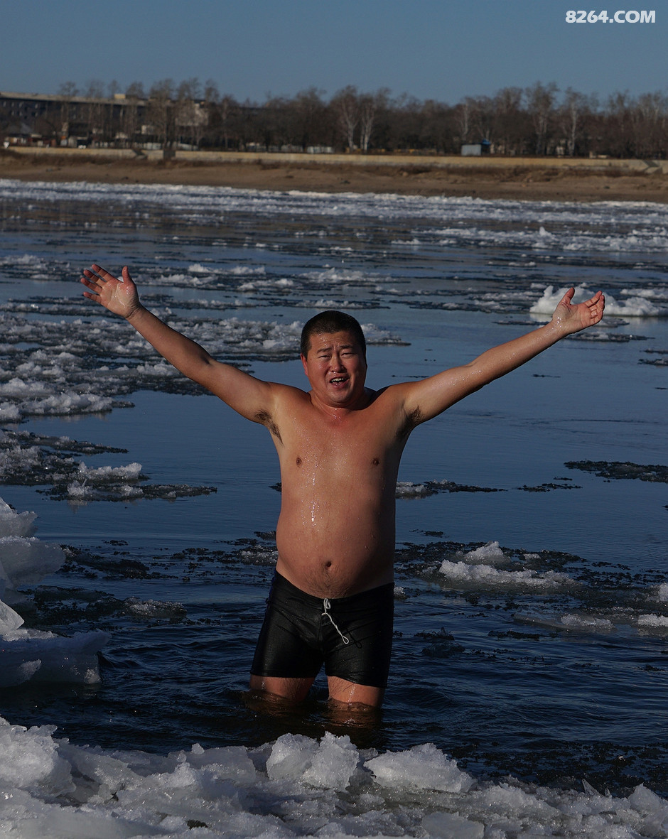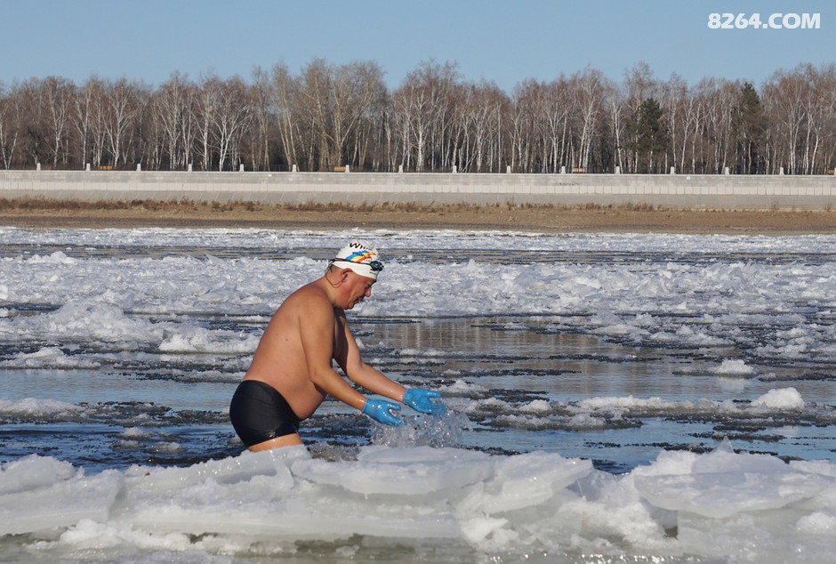 度多一点,大片的冰排一直不停的泄着。我们黑河冬泳队的勇士们,不畏艰难困苦,在黑龙江中畅游,在冰排的缝隙间穿梭。他们中最大的是8