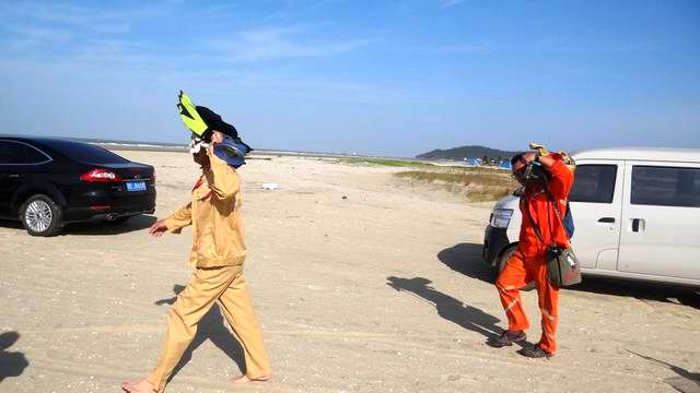 2015年7月2日早上,大海豚跟随海豚潜水打捞队进行搜救行动的现场照片。