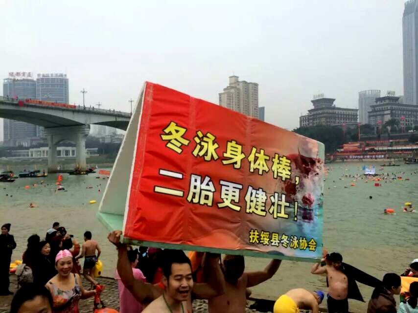 我们的队伍正在扶绥县参加冬泳左江活动,我们的队员也积极冬泳,努力生二胎。