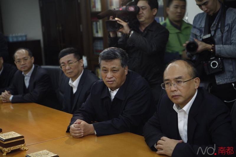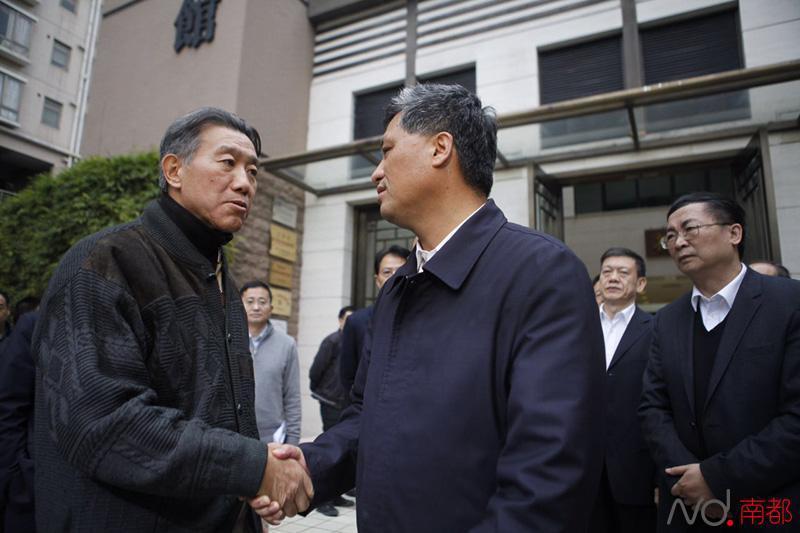 图为市委书记马兴瑞与袁庚家属握手。老蛇口人来了,老招商局人来了,白发沧桑的老部下来了,正在开两会的市委书记,市长,带着四套班子成员来了,鞠躬、献花、吊唁袁庚。