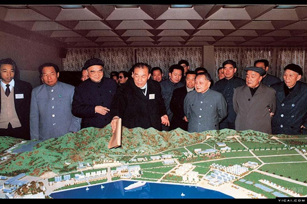 1984年1月26日,邓小平、杨尚昆、王震等视察蛇口,听袁庚介绍蛇口工业区规划。