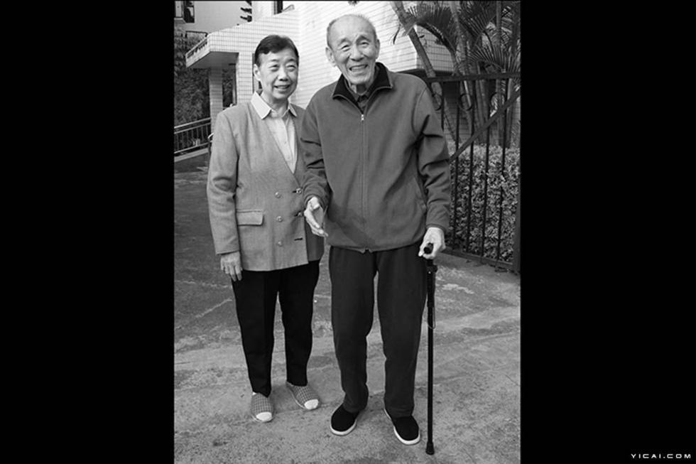 在蛇口的家门口,袁庚与相濡以沫数十载的太太合影。