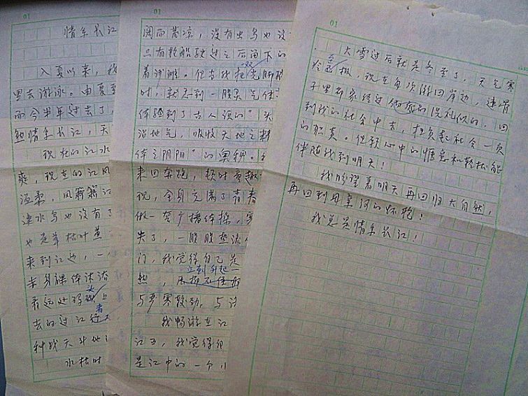 那时长江水比今日的江水冷两三度,一般10月份后,江里就看不见泳人的身影了,最冷的数九天廖师付也停泳了,我却坚持不懈,写下了这篇感文。全文如下:  ' v( @" J7 b8 O: k2 z; a